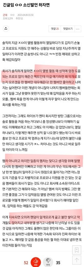 방울아 저건 그냥 악개야 애초에 타가수들 다 하는 프로모 조차 다 하지 못하고 몇개 한거 뿐이고 내용도 딱 보니 반 이상이 날조고 추천수 겨우 50개 정도는 좌표 찍으면 그냥 찍히는 건데.. 정상팬인 니가 저런 악개 때문에 휴덕할 필요는 없었는데.. 제대로 못 말려서 진짜 미안해 쉬다가 25년에 꼭 돌아오자 방탄 정말 좋은 사람들임