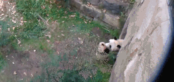 결국 아이바오가 푸바오를 데리고 안으로 들어감