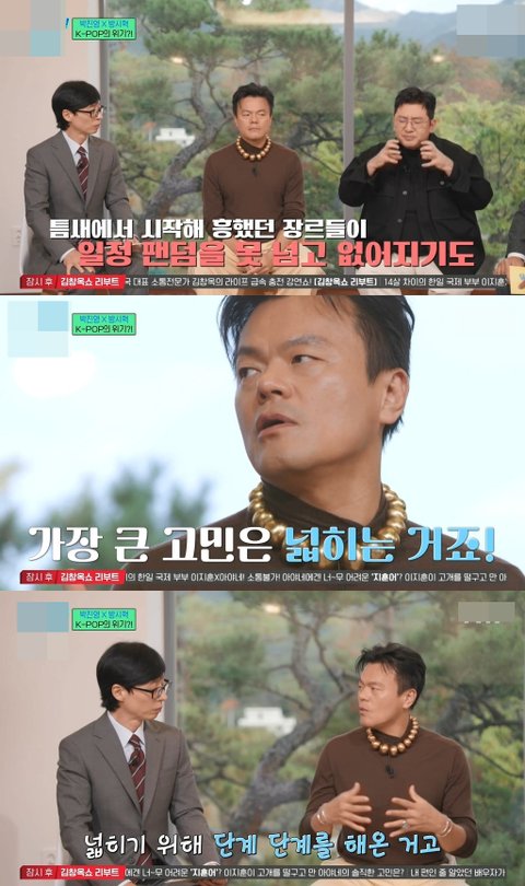 유퀴즈에 나와서 케이팝에 대한 이야기를 한 박진영, 방시혁.