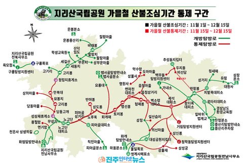 #지리산국립공원 #가을철산불조심기간 #지리산탐방로_일부구간통제 #지리산국립공원경남사무소 #지리산국립공원전북사무소 #지리산국립공원전남사무소 #진주인터넷뉴스