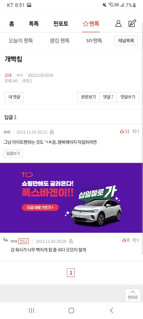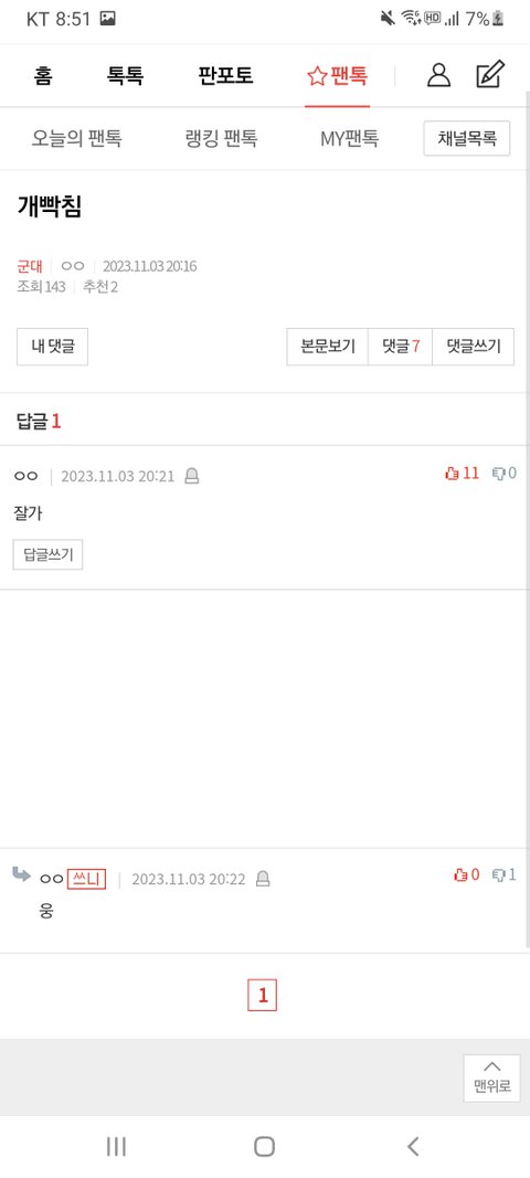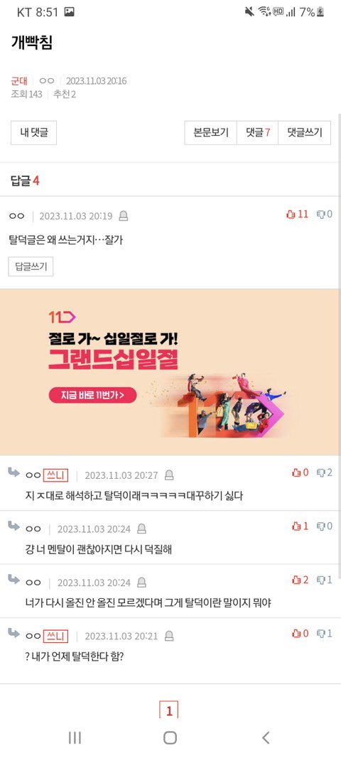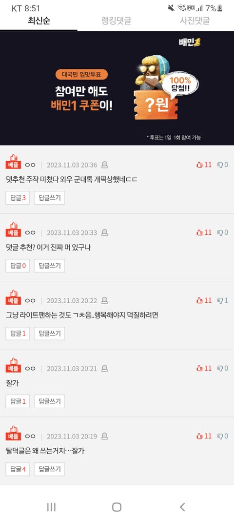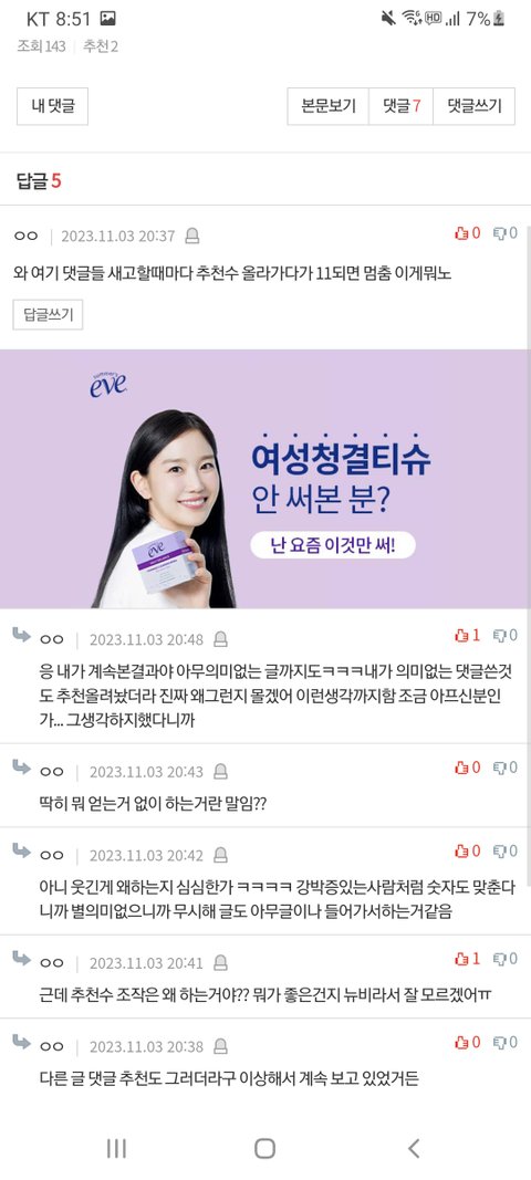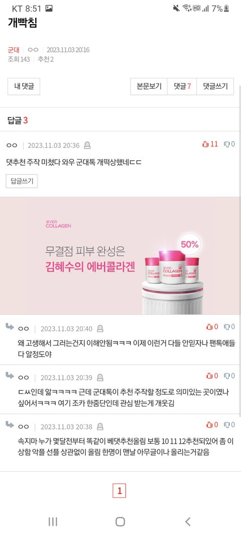 베댓 조작 있었고 어그로 끌리기 좋은 글이라 글삭 안 할 경우 대비해서 조방 땀