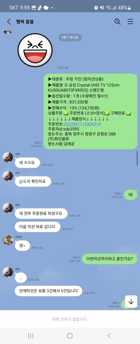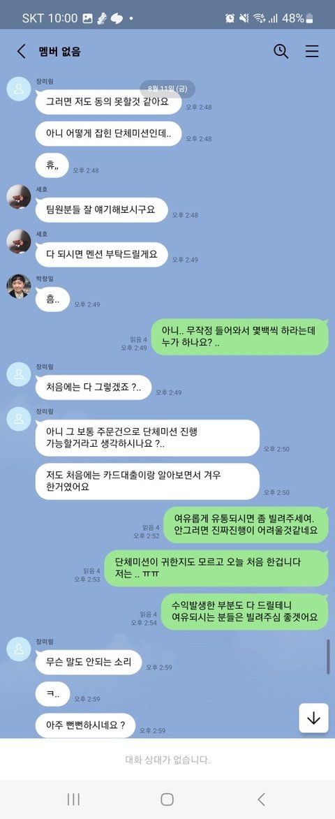 운이 좋다고 일년에 2번 있을까말까한 단체미션있다고 합니다. 수익이 굉장히 좋다고 떠들어요