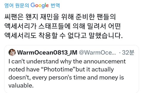뭐지? 재민이는 팬싸 템 못착용하게 했다는데