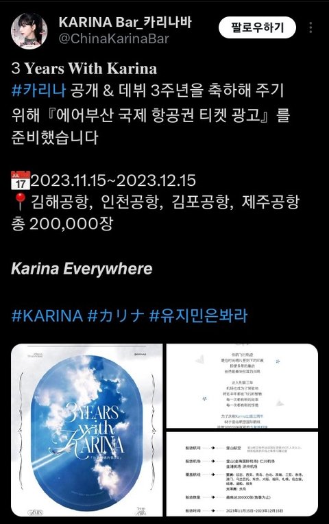 에어부산 국제 항공권 티켓 광고 20만 준비한다니.. 대박 근데 카리나바 스케일이 미쳤다. 카리나가 항공권 티켓 광고 보면 얼마나 감동일까?