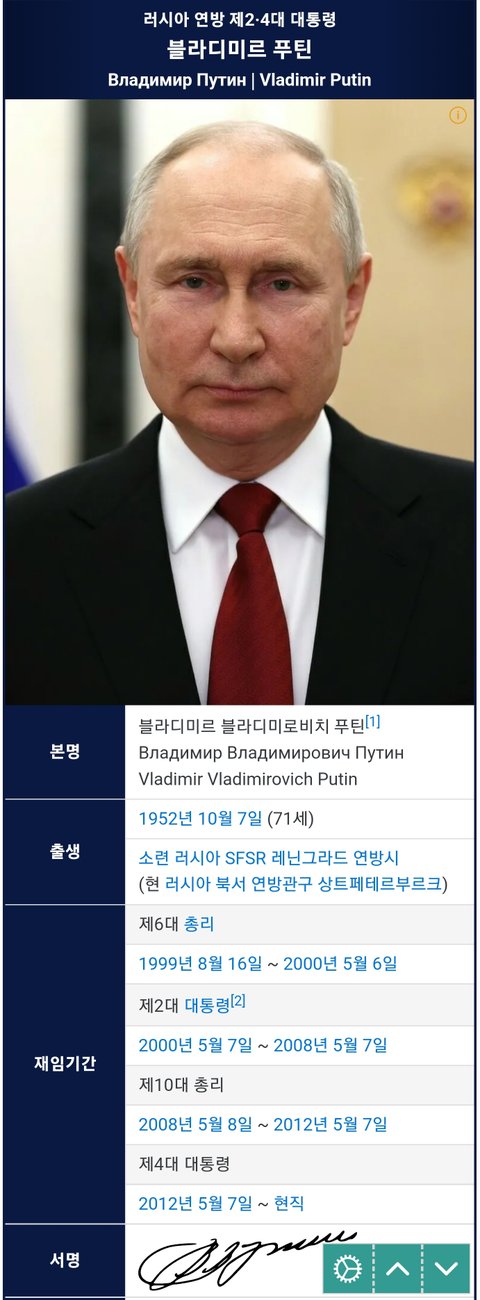 (사진2 설명) 블라디미르 푸틴(Владимир Путин, Vladimir Putin) <출처 : 네이버 나무위키>