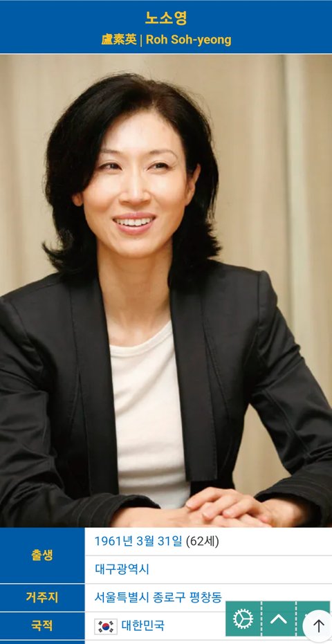 (사진8,9 설명) 노소영(盧素英, Roh Soh-yeong) 아트센터 나비 관장 <출처 : 네이버 나무위키>