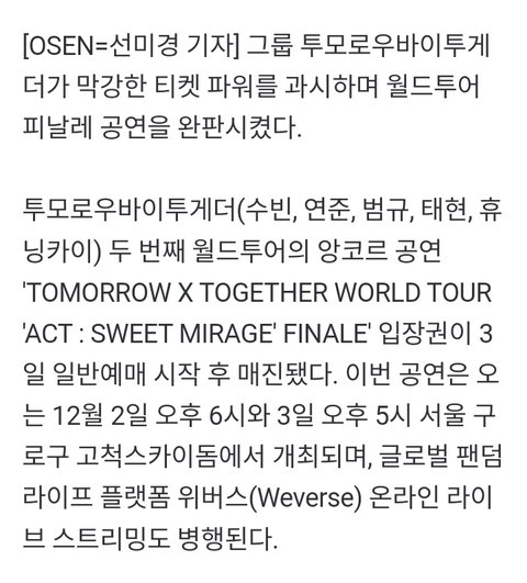투바투 대박!! 고척돔 피날레 공연도 매진