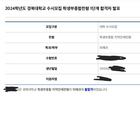욕하는 저능아 새끼들아 의예과인 거 안 보이냐ㅋㅋ 쓰니가 늬들보다 더 열심히 살았고 머리도 좋은 거 보이니깐 아닥하셈 쓰니는 너무 낙담해하지마 다른 좋은 대학 붙을 수 있을 거야 ❤️ 화이팅