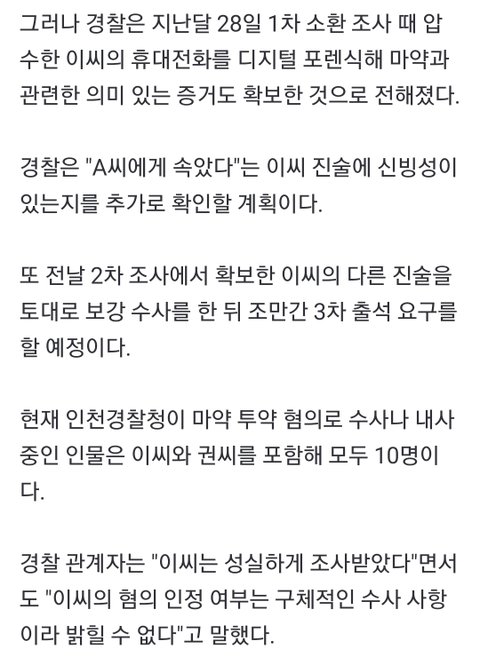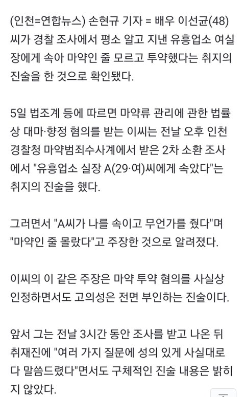 20살 가까이 어린 업소실장 집에서 불륜짓거리 하다 마약받아 먹었고 본인은 몰랐다 한 듯 발언 관련 직접 증거가 있는지를 봐야겠네 몰랐는데 협박당한 증거
