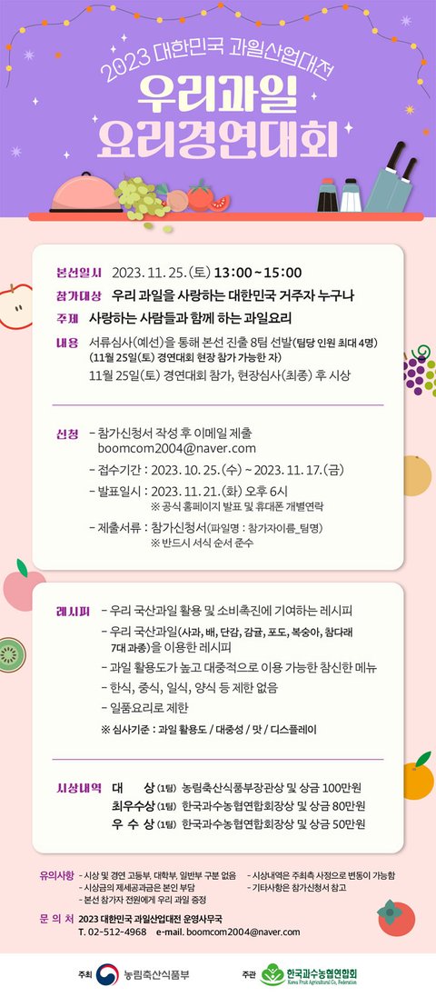 2023 대한민국 과일산업대전 우리과일 공모전 요리경연대회