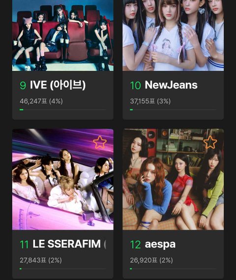 에스파 진짜 안싫어하는데 맨날 국내에서는 에스파가 코어팬덤 1위라는글 하도 많이 봐서 나도 그렇게 생각했는데 멜뮤투표결과보면 ㄹㅇ 의외라 놀랐음...