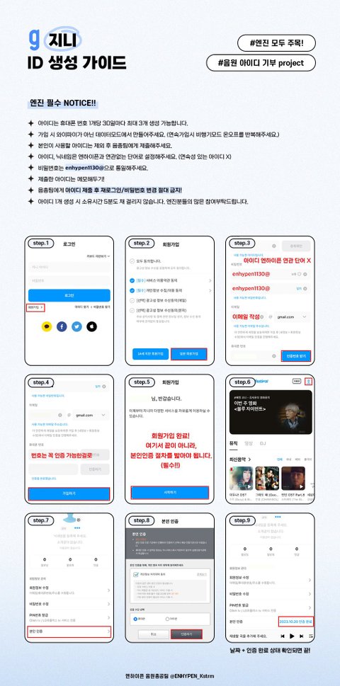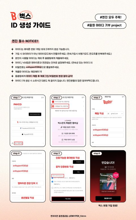 * 계정 생성 후 반드시 아래 링크(엔하이픈 음원총공팀)에 들어가 폼 작성
