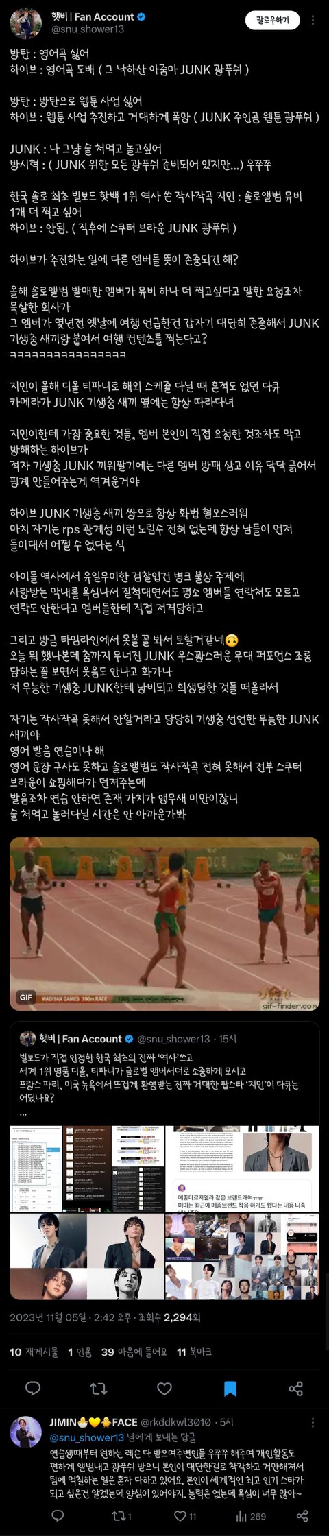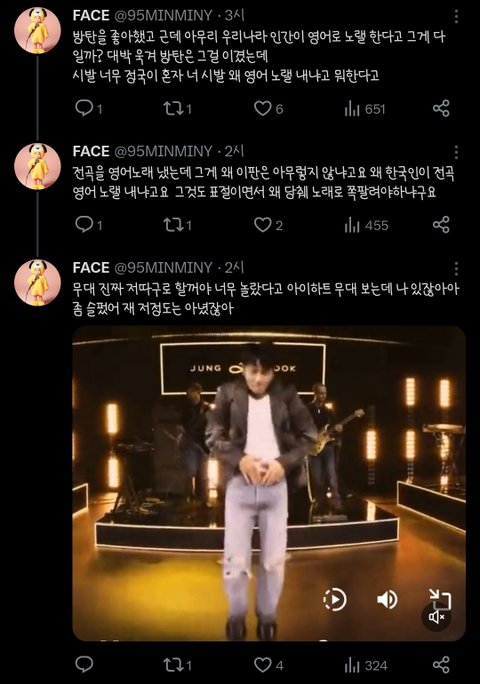 저건 빙산의 일각 극일부고 죄다 주어없이 허공저격 or 저렇게 전정국 대놓고 까고 표절 빌드업하고 있다는 사실