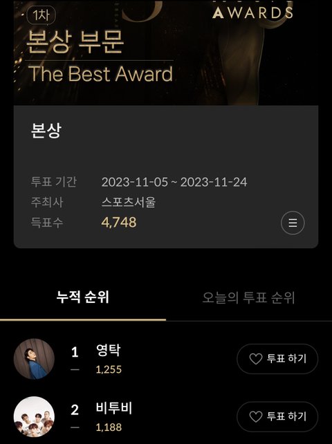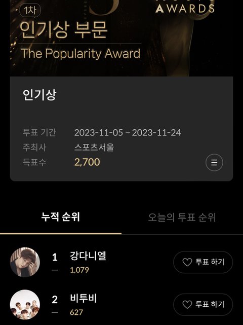 아직 투표 극초반이지만 순위 높아!! 서가대 본상이랑 인기상 받자