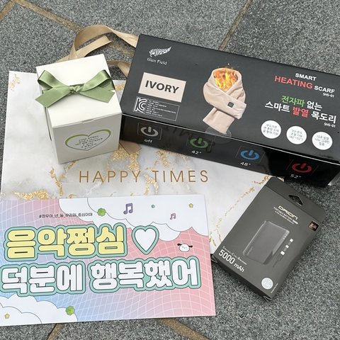 물빨래 가능한 전자파 없는 스마트 발열 목도리 + 보조배터리