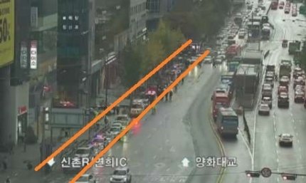 경찰과 소방은 사고 처리를 위해 홍대입구역에서 동교동삼거리 방향으로 향하는 양화로 4차로를 통제하고 있다.