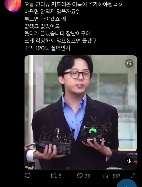 팬들에게 한마디 해달라고 진짜 한마디 해주는 지드래곤이 선녀다ㅋㅋㅋㅋㅋ탈모 했냐는 질문에 대답도 해주고 가도 될까요? 물으면서 합장 인사까지 하는 지디가 예의 원탑이다ㄹㅇ