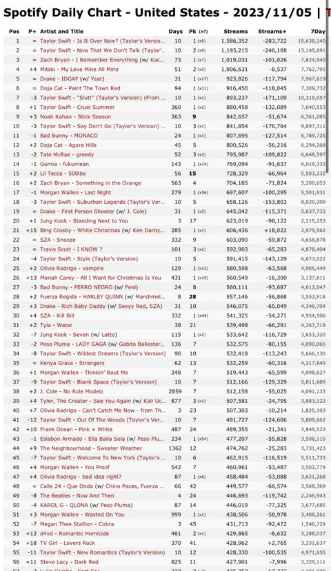 정작 11월 5일 기준 테이는 1, 2위 포함 미포티 top50에 1n곡 꽂아넣을 때 정국은 20위, 32위 말고는 보이지도 않음(발매일에는 top 50의 30곡 이상이 테이였으니까 관련해서 반박하려는 생각 하지 마셈)
