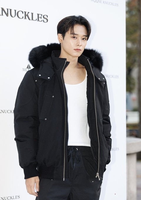 바지에도 무스너클 로고 박혀져 있군아,, 얼굴이 잘생기니까 패딩이 괜찮게 보임 ㅋㅋ