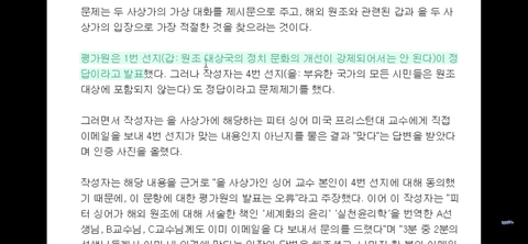 모의고사 오류 있는것같아서 어떤 학생이 아직 살아계신 사상가인 싱어한테 직접 물어본거....근데 진짜 답변왔고 오류였음