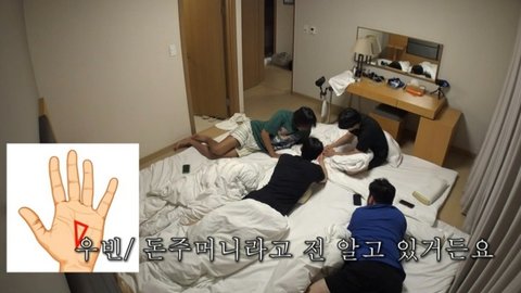 옹기종기 모여 손금토크 시작하는 콩콩팥팥 멤버들