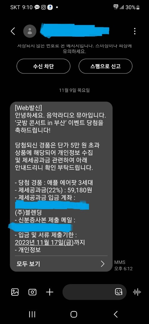 오늘 문자로 이벤트 당첨으로 에어팟이 당첨됐다고 연락이 왔다