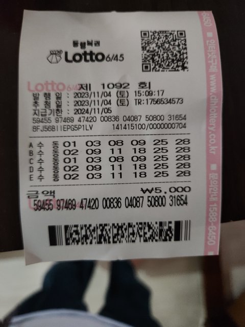 그 때 재밌었던건 내가 스쿠터를 끌면서 로또 번호를 적고 있었다 ㅋㅋㅋㅋ