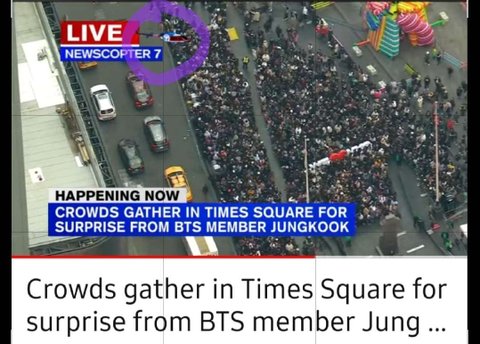 오늘 뉴욕 타임스퀘어 정국 게릴라콘서트 취재하려고 헬기 띄움