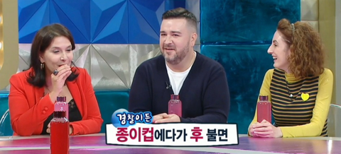 운전자가 종이컵에다가 후 불면