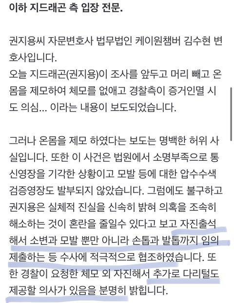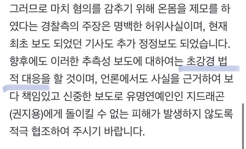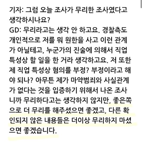 무리한 수사 아니라고 일이니 어쩔 수 없는 거 아니겠냐 다만 최대한 빨리 조사하셔서 잘 수사해달라 돌려돌려 예쁘게 커버쳐줘도 못 알아쳐먹기ㅋㅋ 아 ㅅㅂ 받아먹으라고 떠다줘도 지들이 뱉어내는 데 권지용이라고 별 수 있나 지랄견모습 나와야지