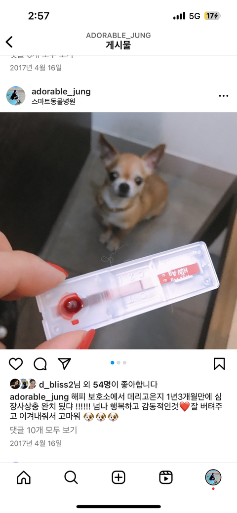 이후, 병원에 가서 기본적인 검사를 해보니 심장 사상충 3기 말이었다. 비용도 비용이지만 치료도 오래 걸릴 것이며 치료를 하다 못 버티면 하늘나라에 갈 수도 있다고 했다.