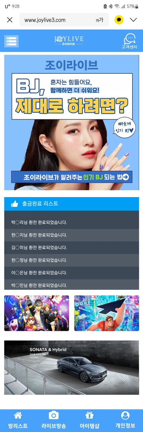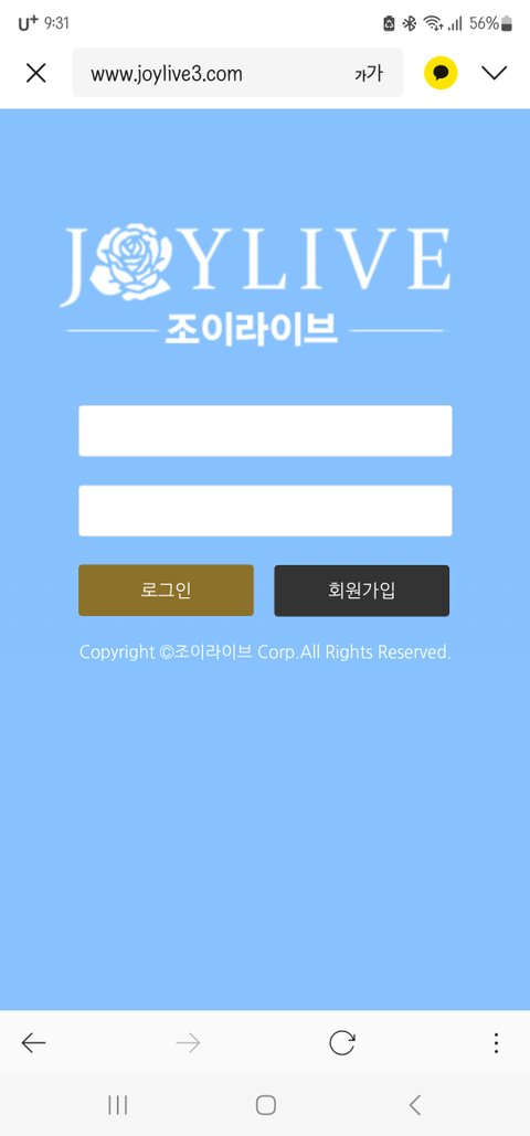 - 라방 사이트라며 알려줘서 들어가보니 첫페이지부터 사기 스멜 펄펄나는UI를 하고 있음 (조이라이브)