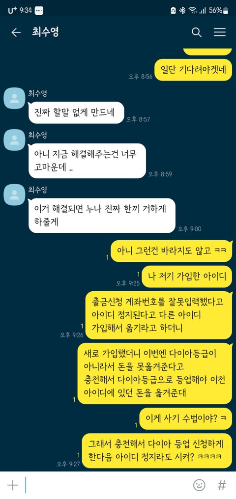 애초에 첨부터 끝까지 다 수상했는데혹시 진짜 돈이면 어쩌나 어차피 내돈 아니니까 쟤한테 돌려주고 탈퇴해야겠다생각했는데 찾아보니 탈퇴버튼도 없음;;;;