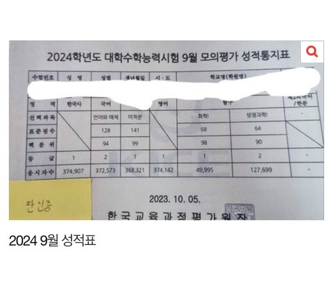 원글 삭제됐는데 올해 9모 성적표 보면 선택과목 화학 생명임