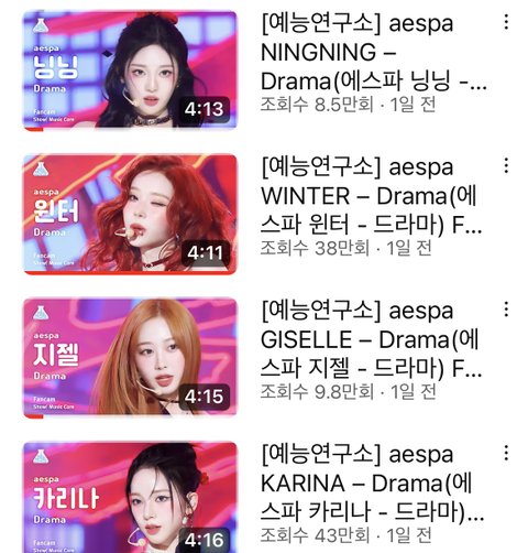 카리나 윈터 음중 직캠 조회수
