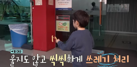 반면 진우는 차분하게 쓰레기 버리고 옴