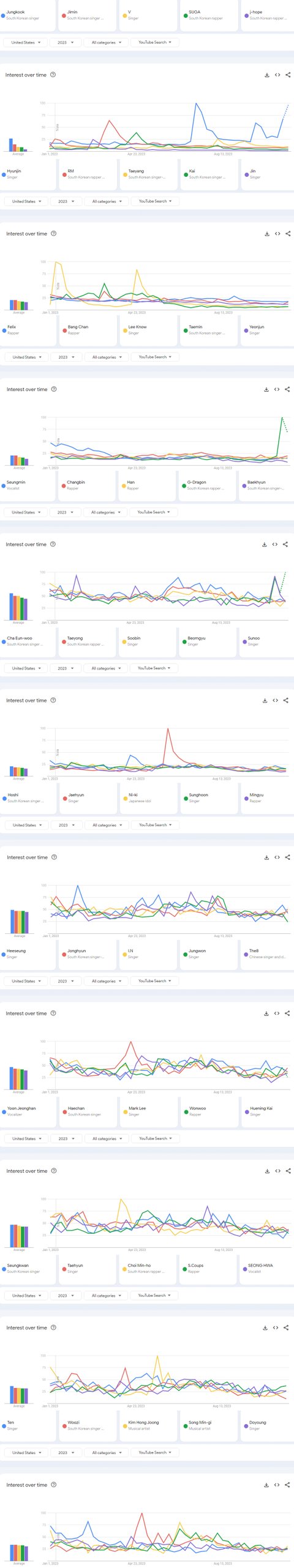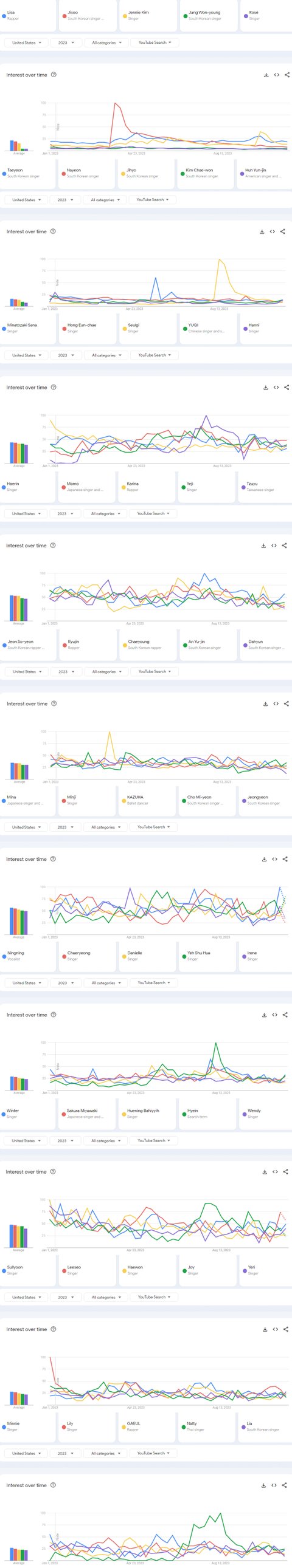 2023년 미국 유튜브에서 가장 많이 검색된 케이팝 여자아이돌 멤버 TOP50
