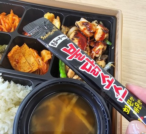 자취하면서 한식 안 먹은지 꽤 돼서 저녁으로 배달 도시락 시켜봤어용ㅋㅋ닭구이로 시켰는데 스틱불닭소스 뿌리니 더 맛나여~
