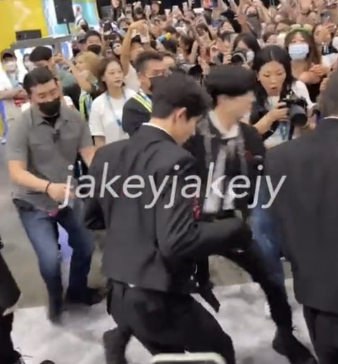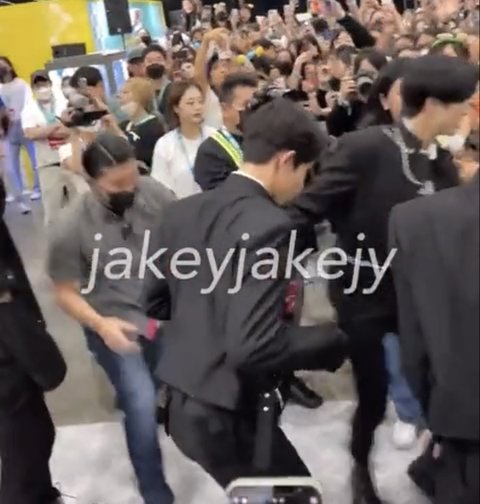 물병 날아왔는데(누가 고의로 던진건지 실수로 던진건지 모름) 멤버들 다칠까봐 달려가서 몸으로 막음