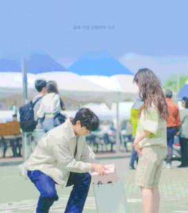 목하에게 자기 운동화를 신겨주는 기호