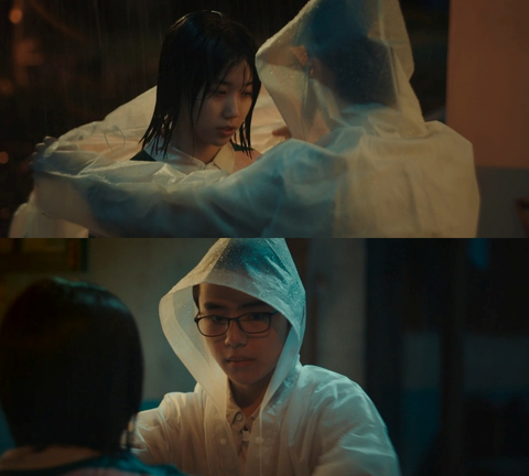 비 맞은 목하에게 우비 입혀주는 기호