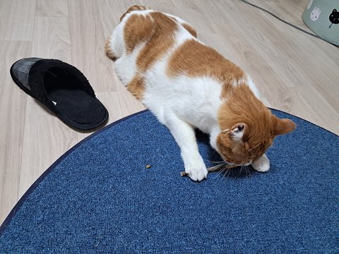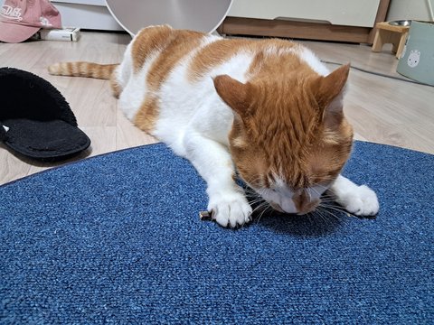 그래도 집사가 힘들게 돈벌어 사온 성의를 봐서 가까이 다가가서 냄새는 맡아봄.