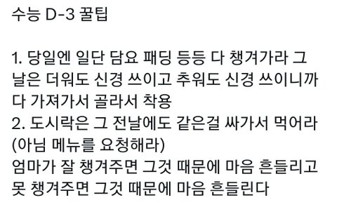 수능 첨보는 친구들을 위한 수능 당일 꿀팁