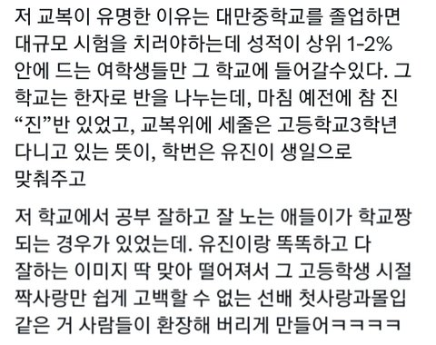 최근에 대만에서 팬싸했는데 팬싸템으로 대만에서 유명한 고등학교 교복을 받음
