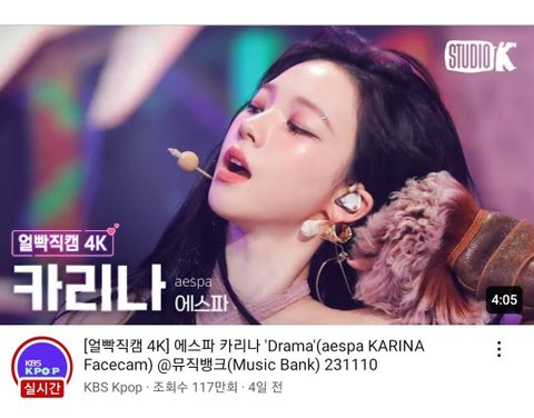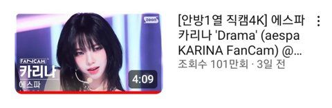 와 카리나 직캠은 레전드임 100만 넘었네 ㄹㅇ 썸네일만 봐도 그럴만두