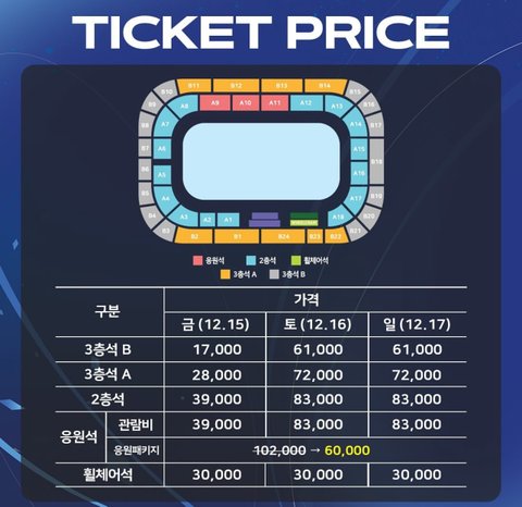 가장 안 좋은 자리에서 3일치 경기를 보려면 12만원을 내야함