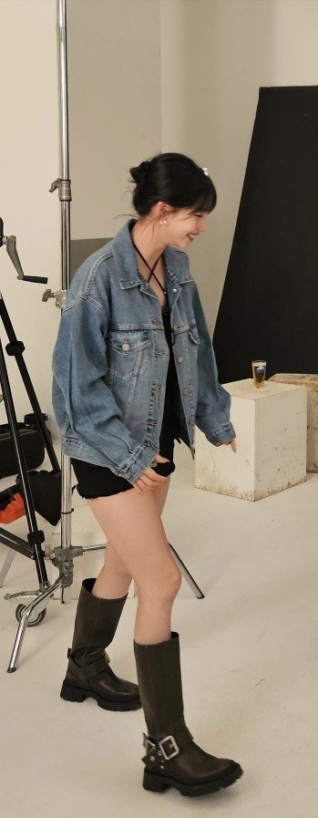 크러시 관계자님랑 찍는거봐 근데 카리나 비율 너무 좋다.. 옷이 크러시 착장인가봄??