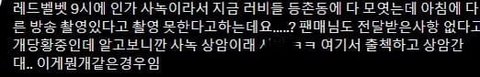 와 역대급이네 사녹 시간 맞춰서 들어가야 하잖아 팬들 3백명이나 되는데 상암까지 시간맞춰서 다 들어간거야...??일처리 무슨일