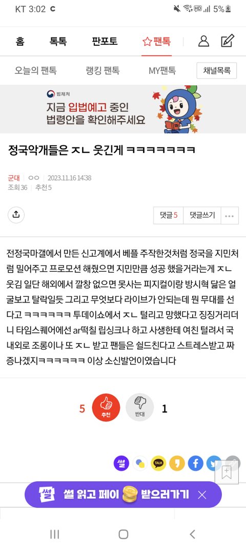 정국악개들은 ㅈㄴ 웃긴게 ㅋㅋㅋㅋㅋㅋㅋ
