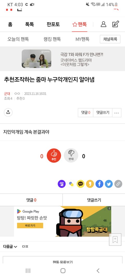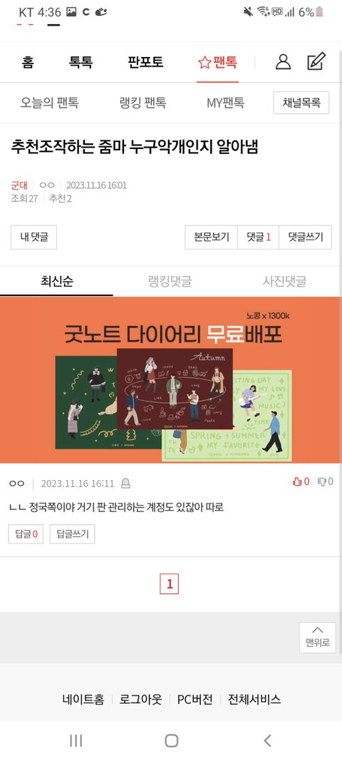 ‼️댓 추가‼️추천조작하는 줌마 누구악개인지 알아냄